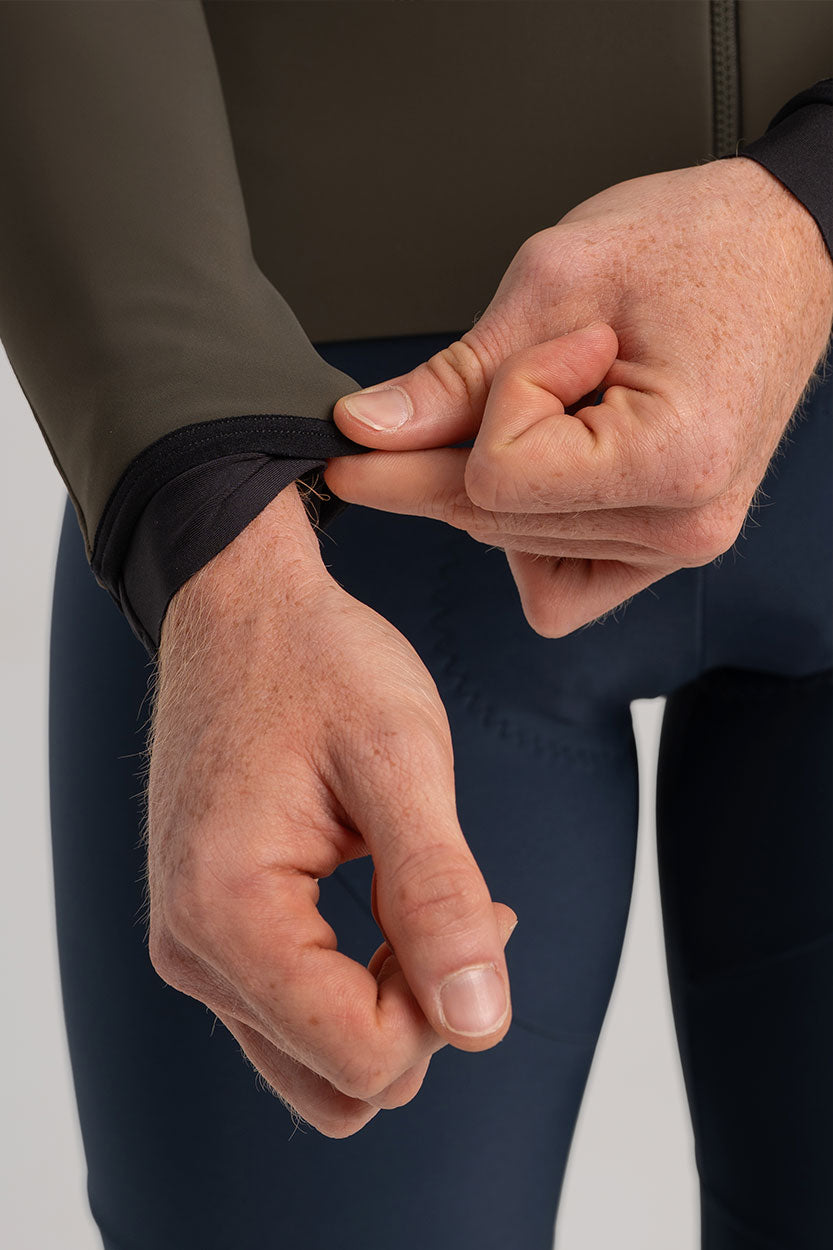 - Tejido de membrana polar en la delantera y mangas. Tejido grueso afelpado y transpirable en la parte trasera para regular la temperatura corporal.
