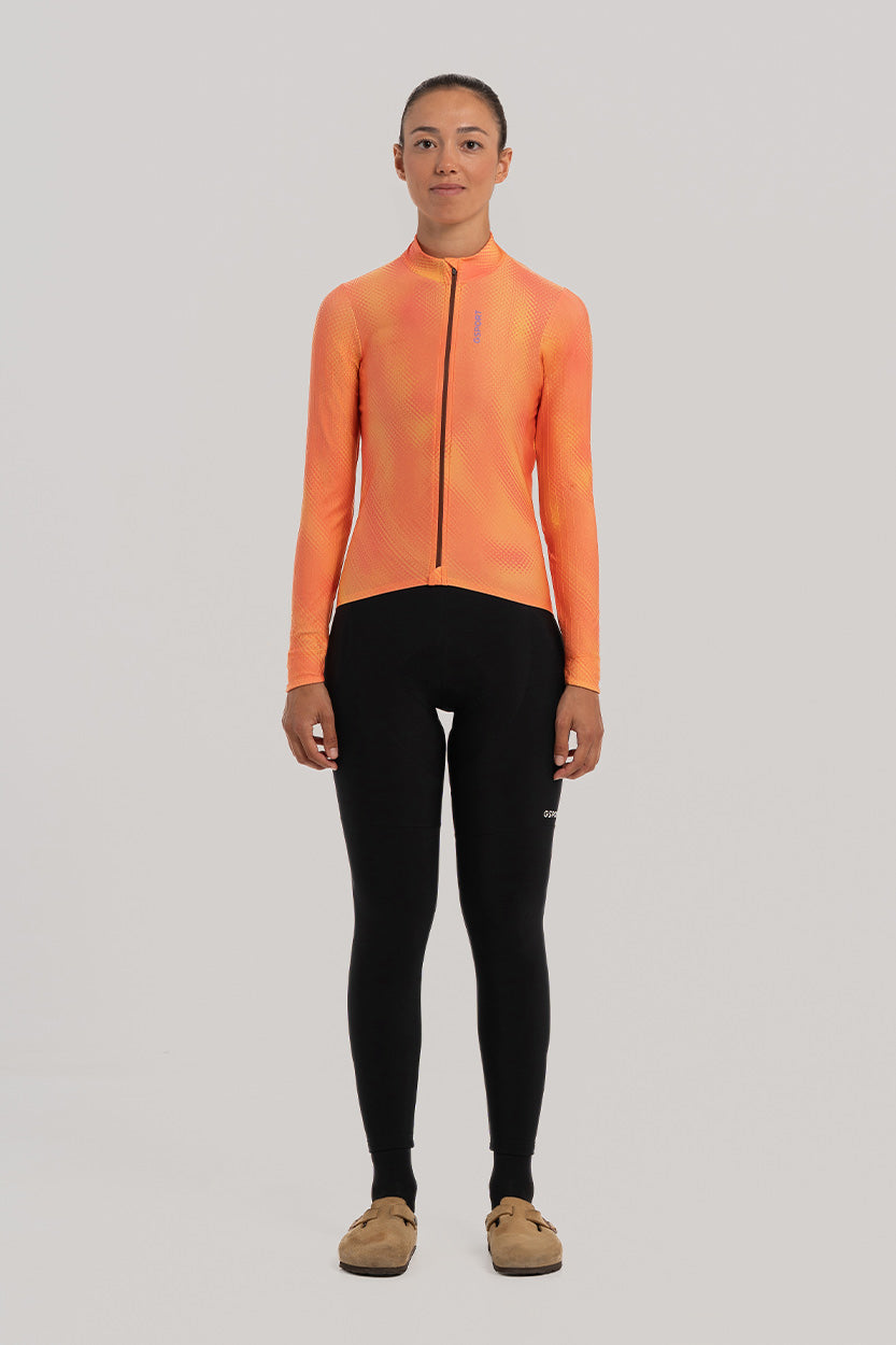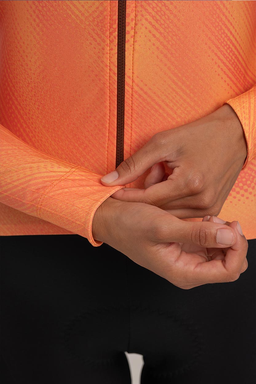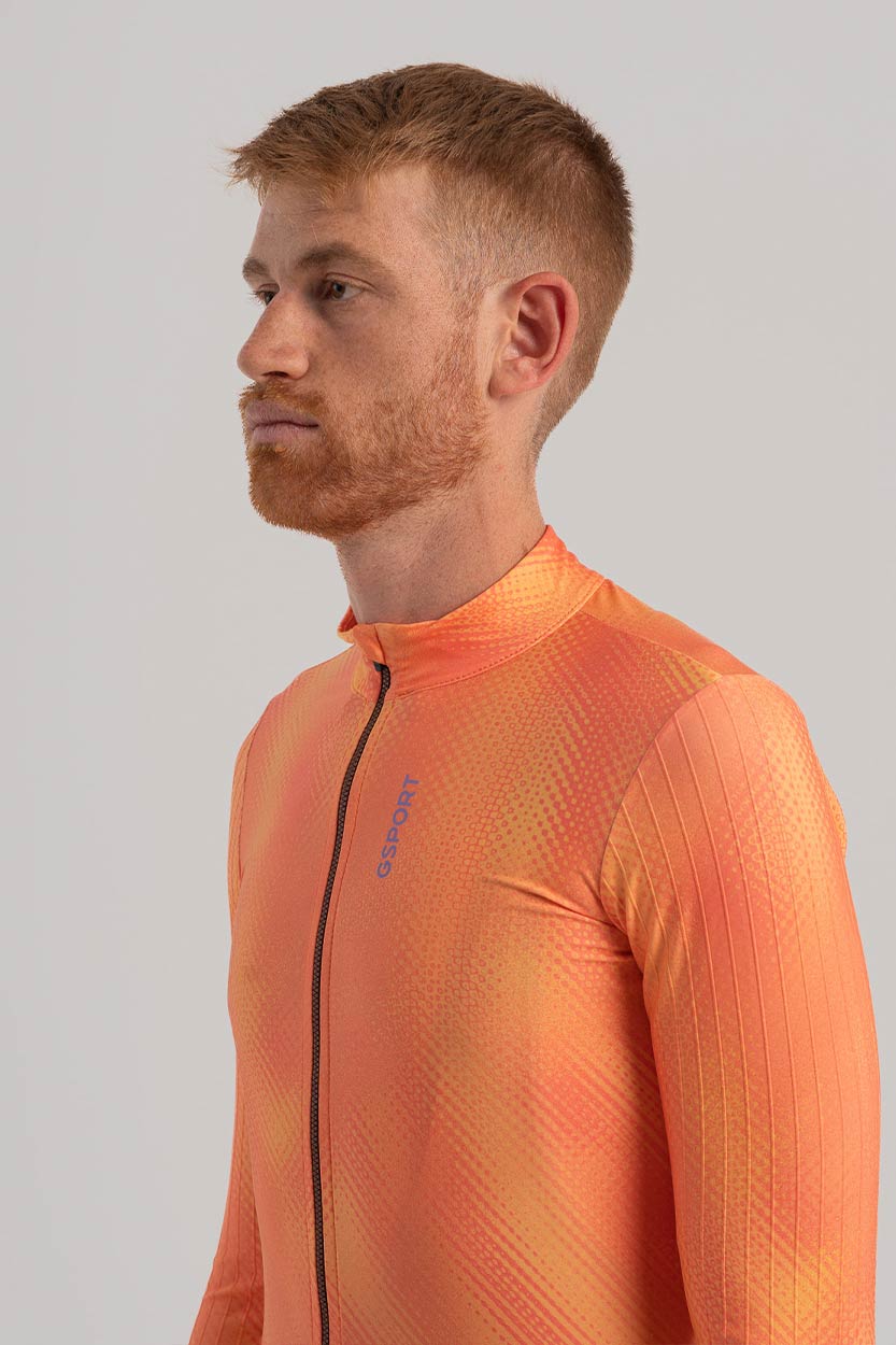 El Maillot Aero estampado se caracteriza por estar confeccionado con un tejido sublimado ligeramente afelpado, lo que lo convierte en la versión ideal de maillot para entretiempo y zonas de clima suave.