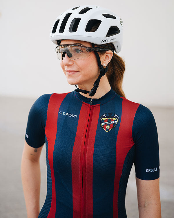 Desde Gsport hemos querido mantener la esencia y la tradición de la camiseta de la primera equipación del Levante UD, haciendo una referencia en este maillot de ciclismo, que mantiene la elección de colores de los clásicos azul y rojo.