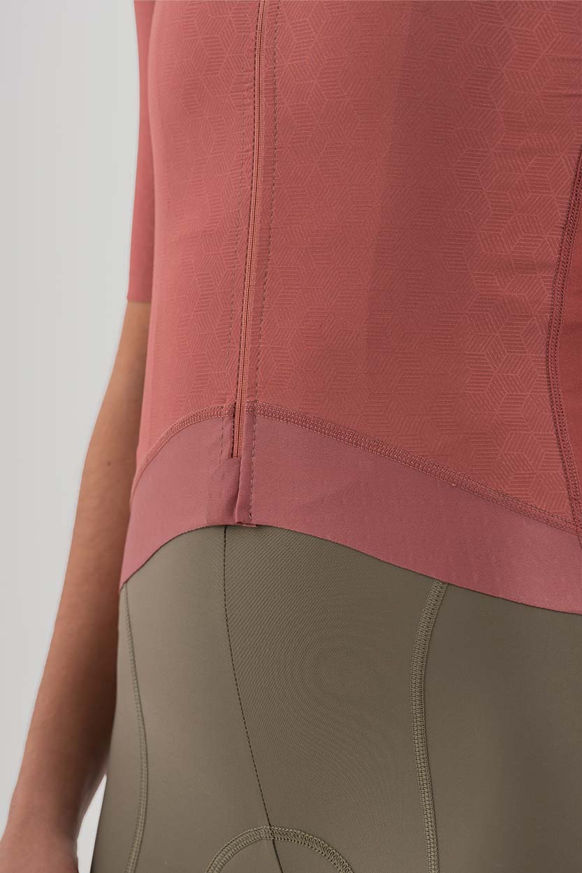 - Trincha delantera y terminación con goma elástica siliconada en la parte de la espalda, para garantizar que el maillot se mantiene en su sitio durante el pedaleo.