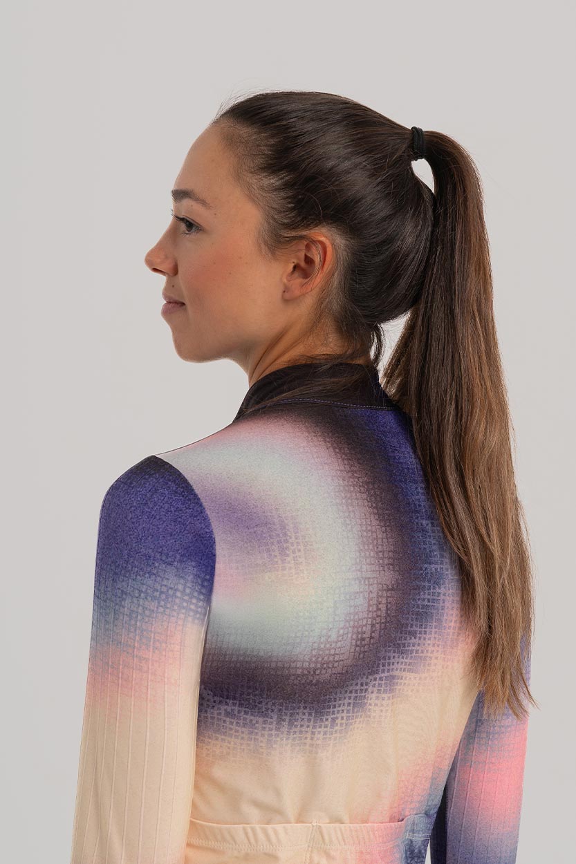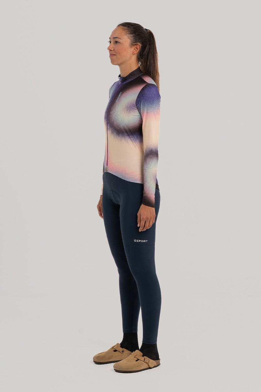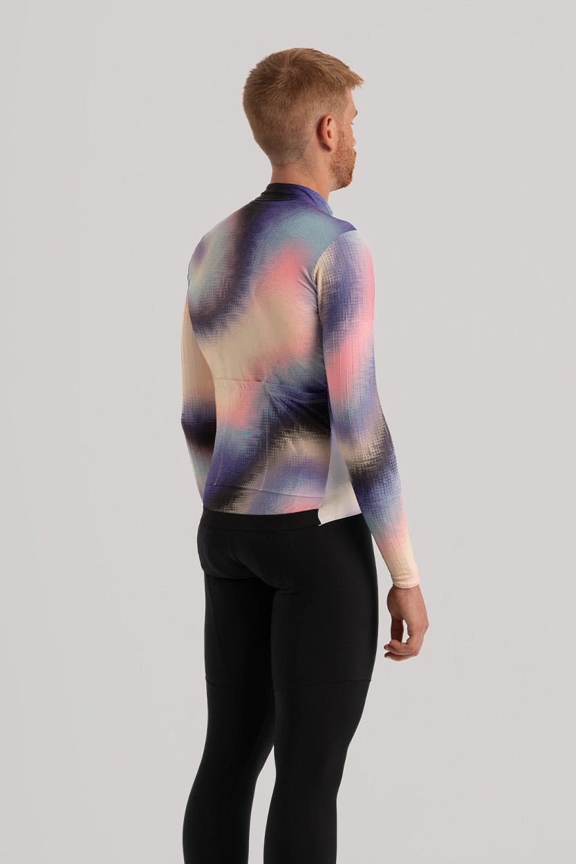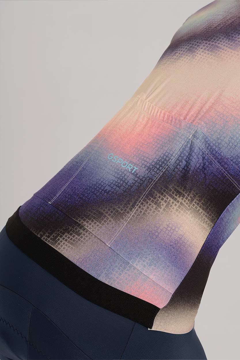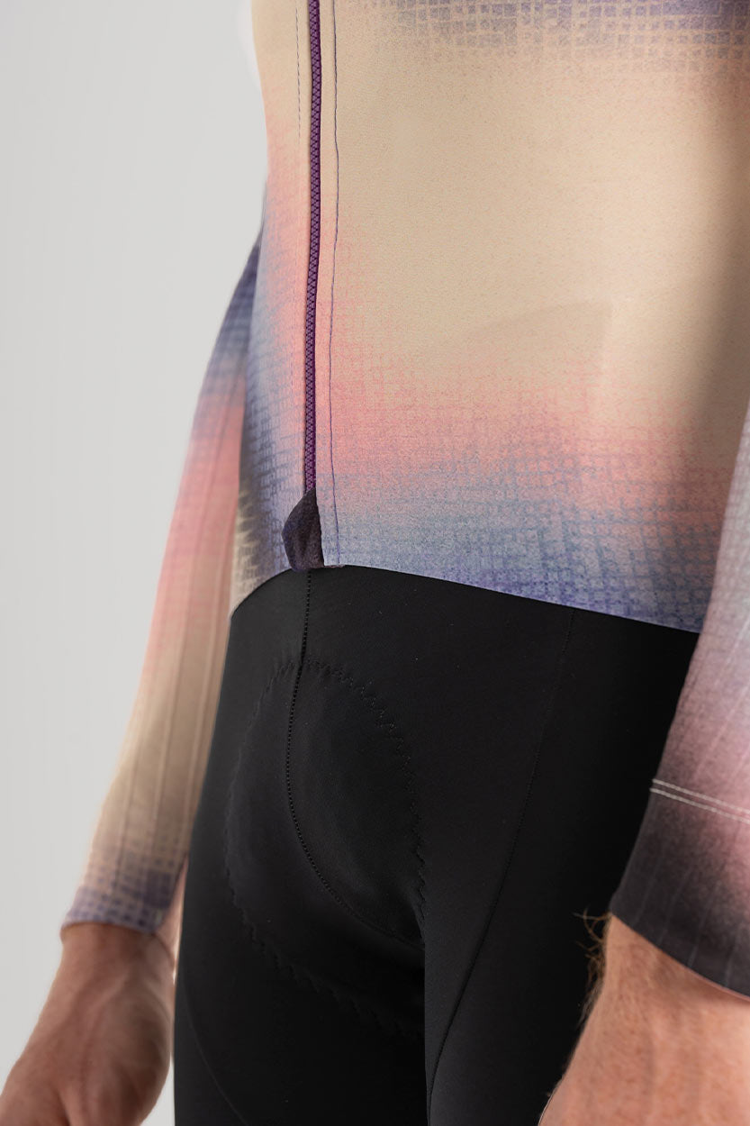 El Maillot Aero estampado se caracteriza por estar confeccionado con un tejido sublimado ligeramente afelpado, lo que lo convierte en la versión ideal de maillot para entretiempo y zonas de clima suave.
