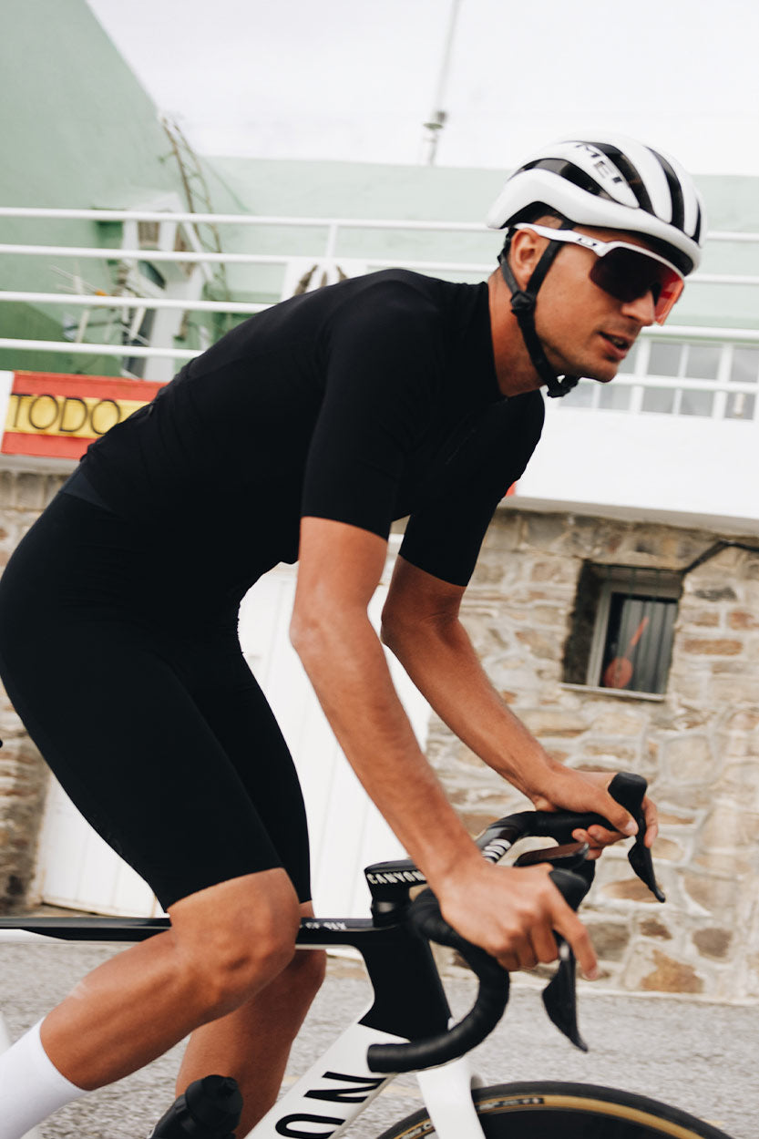La particularité de ce cuissard est l'absence de bande de maintien au niveau des jambes. À la place, il est doté de silicone à l'intérieur de l'ourlet pour maintenir le cuissard en place pendant les efforts intenses. De nouveaux bretelles découpées au laser, hautement respirantes, avec une bande élastique personnalisée Gsport, offrent un maintien maximal au cycliste. La peau de chamois de haute qualité est recommandée pour les longues distances.