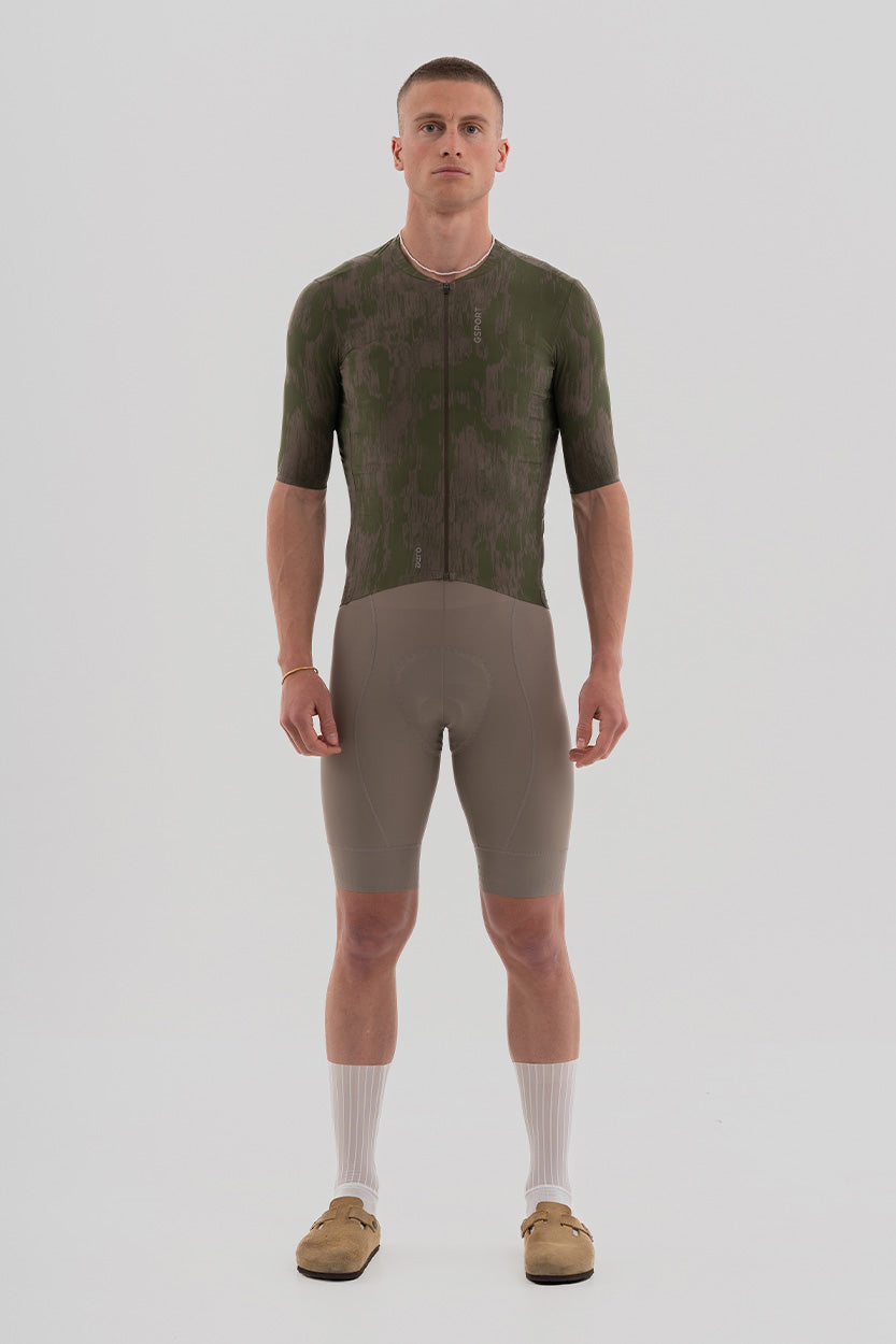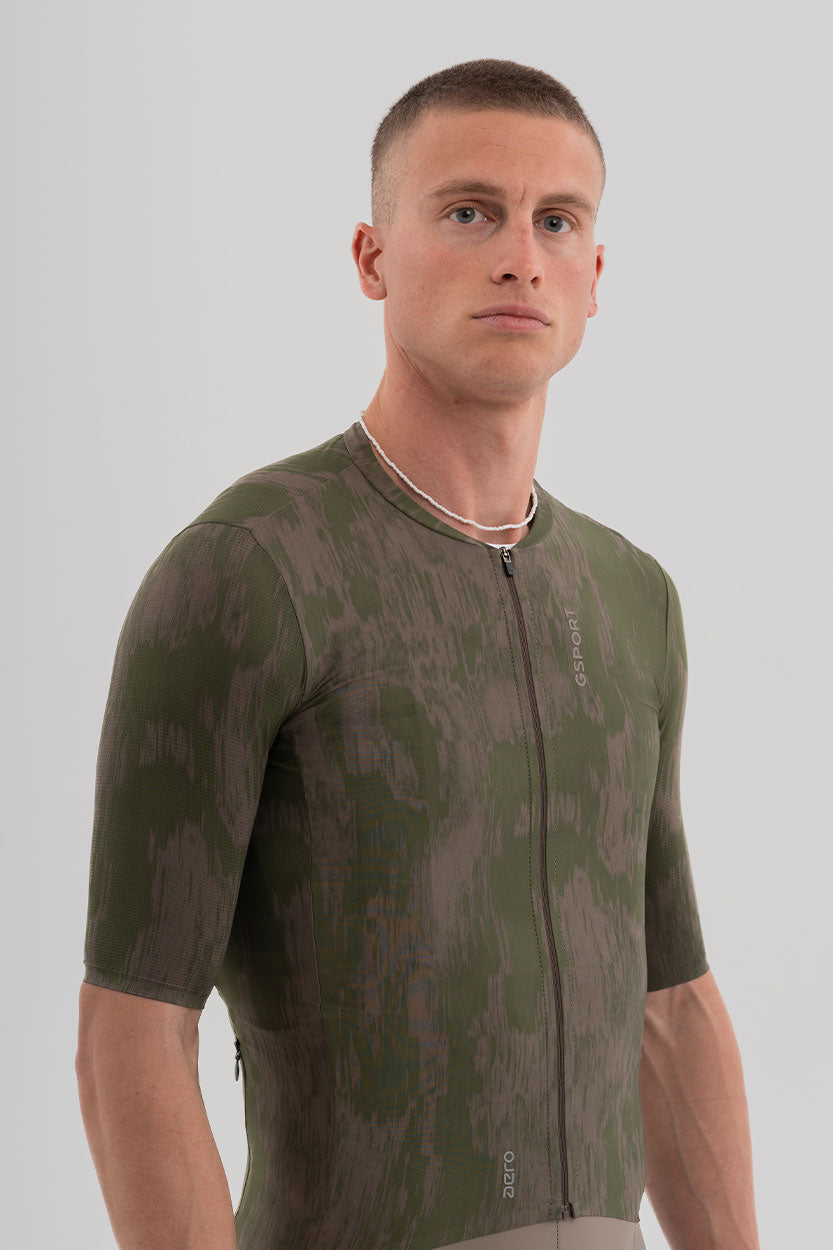 Está compuesto por tres tejidos ligeros: un tejido liso en la parte frontal y laterales, un tejido listado en mangas (que aporta el toque aerodinámico a la prenda) y un tejido microperforado en la espalda y bolsillos. Esta combinación de tejidos lo convierte en un maillot altamente transpirable y de secado rápido.