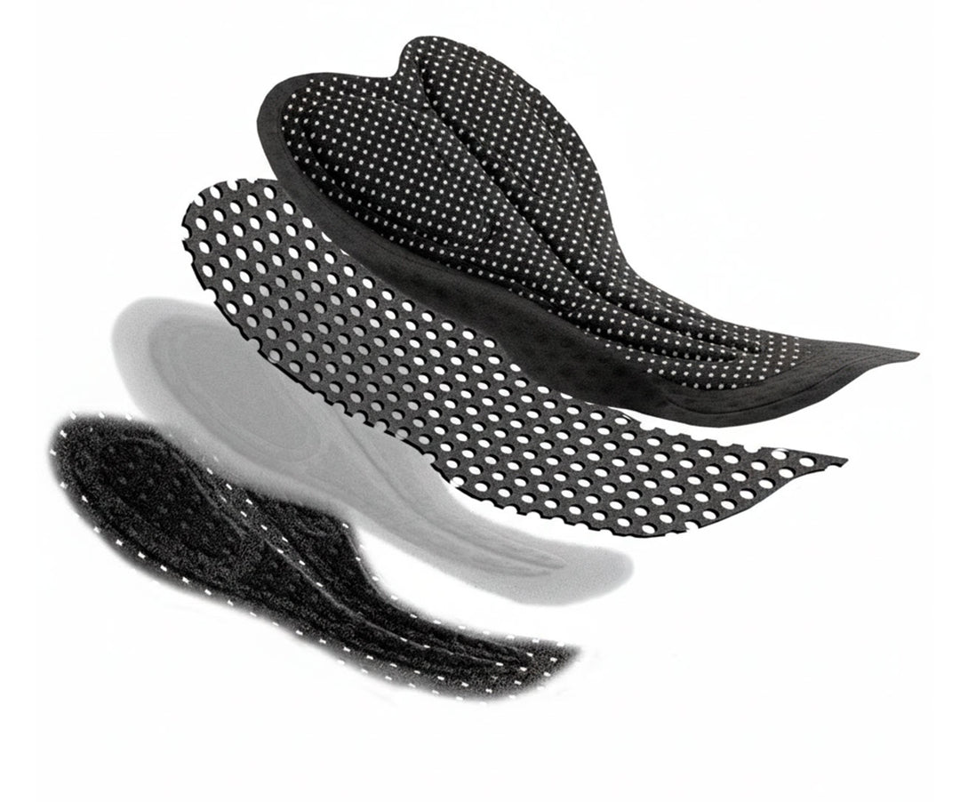 Carneira Dolomiti desenvolvida com 3 camadas fundidas de espumas de diferentes densidades e uma espessura total de 16 mm, garantindo excelente proteção e suporte durante saídas de muitas horas. Uma carneira concebida para assegurar uma secagem rápida e manter o ciclista seco durante a atividade.